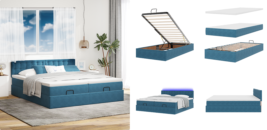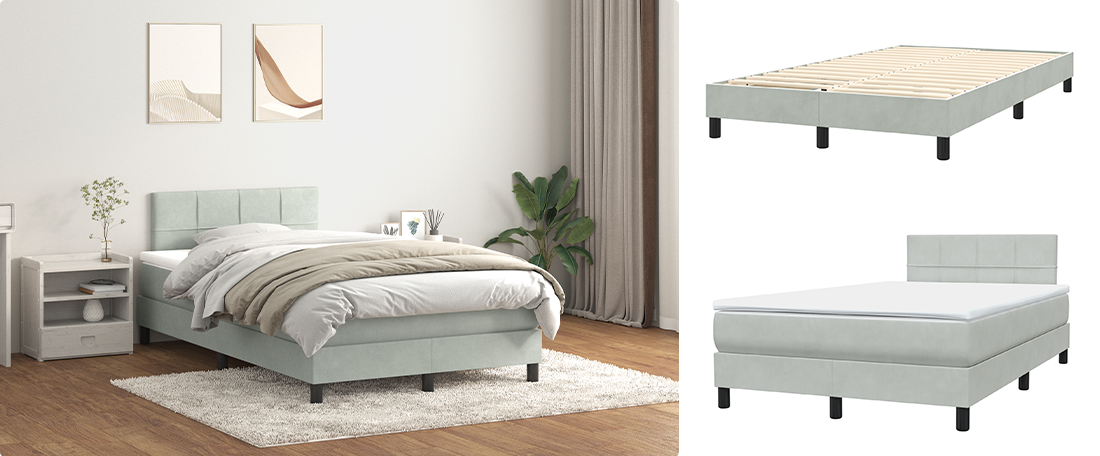 Acest set de pat include un cadru de pat, saltea cu arcuri individuale și un topper moale pentru confort complet. Cadrul de catifea adaugă o notă de confort, în timp ce arcurile individuale oferă suport personalizat și reduc transferul de mișcare. Baza cu lamele oferă o respirabilitate suplimentară, menținând salteaua proaspătă. Este setul perfect all-in-one pentru un somn odihnitor.