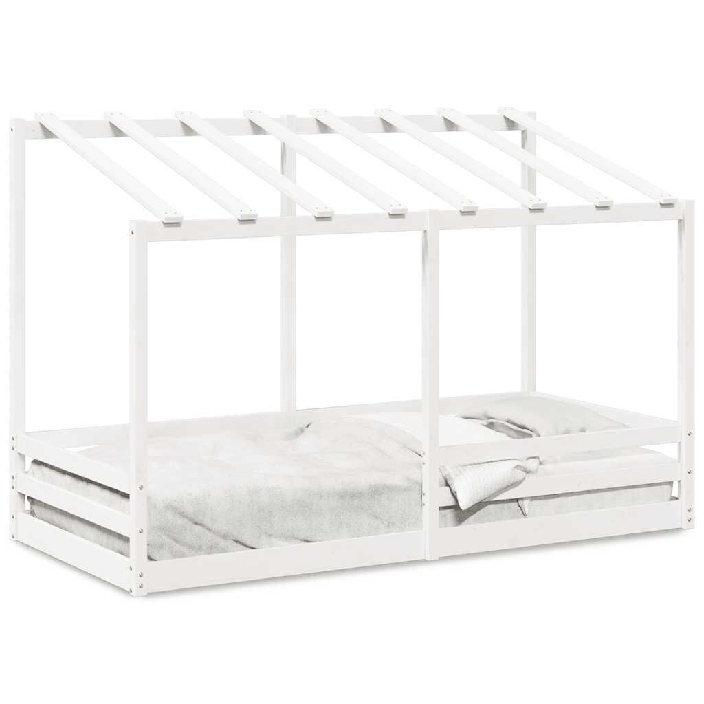 vidaXL Acoperiș pat de copii, alb, 100x200 cm, lemn masiv de pin