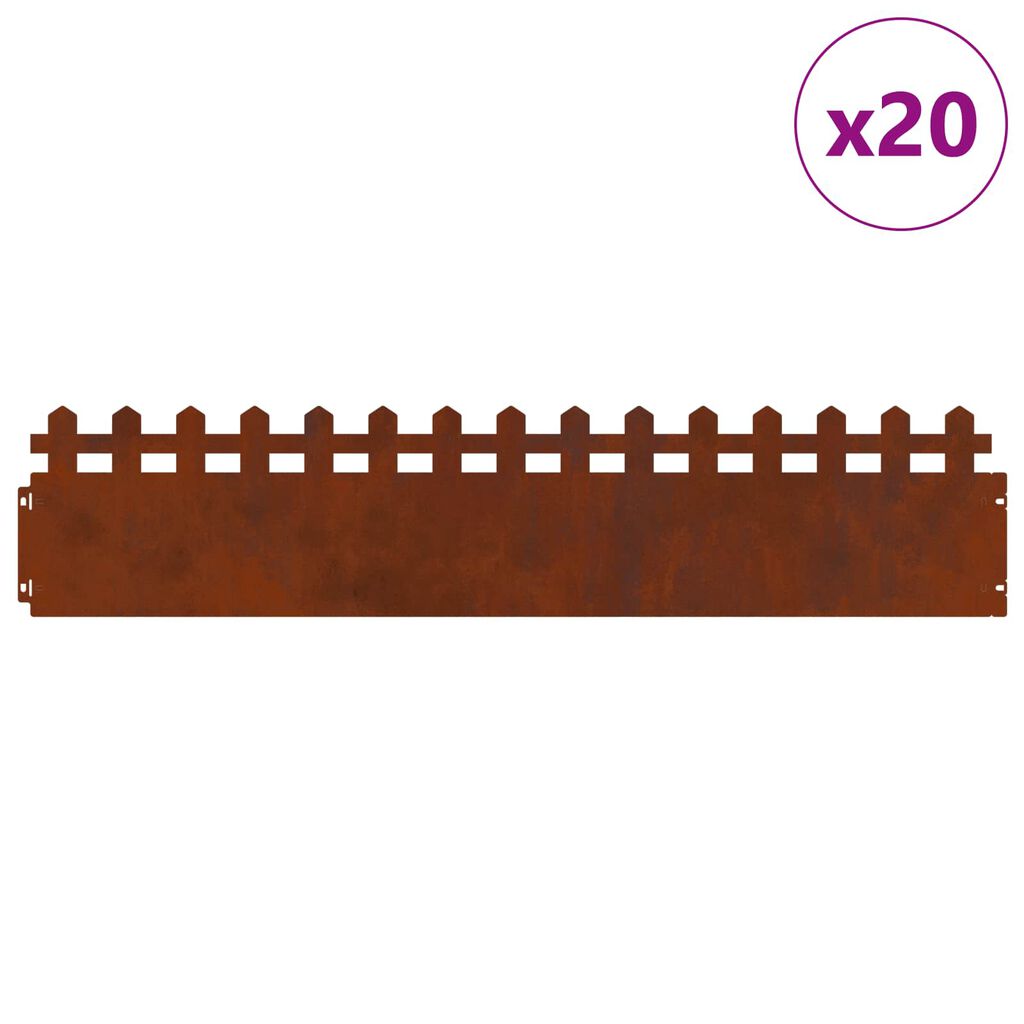 vidaXL Borduri pentru gazon 20 pcs Ruginit 103 x 0,05 x 22 cm