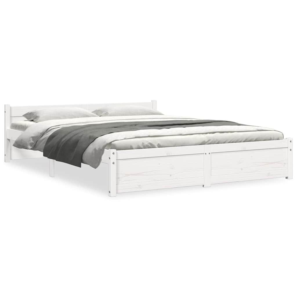 vidaXL Cadru de pat, alb, 140x190 cm, lemn masiv