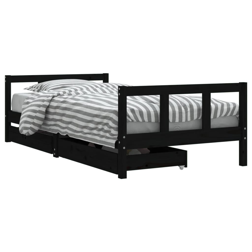 vidaXL Cadru de pat copii cu sertare, negru, 90x190 cm, lemn masiv pin