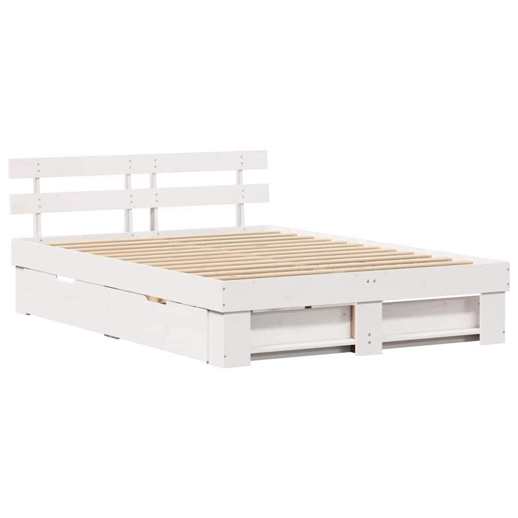 vidaXL Cadru de pat cu headboard Alb 140 x 200 cm Lemn de pin masiv