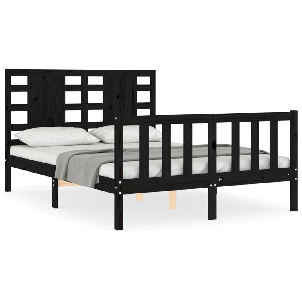 vidaXL Cadru de pat cu tăblie dublu, negru, lemn masiv