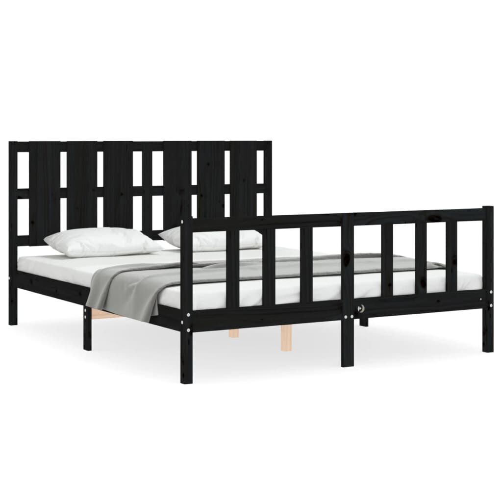 vidaXL Cadru de pat cu tăblie, negru, king size, lemn masiv