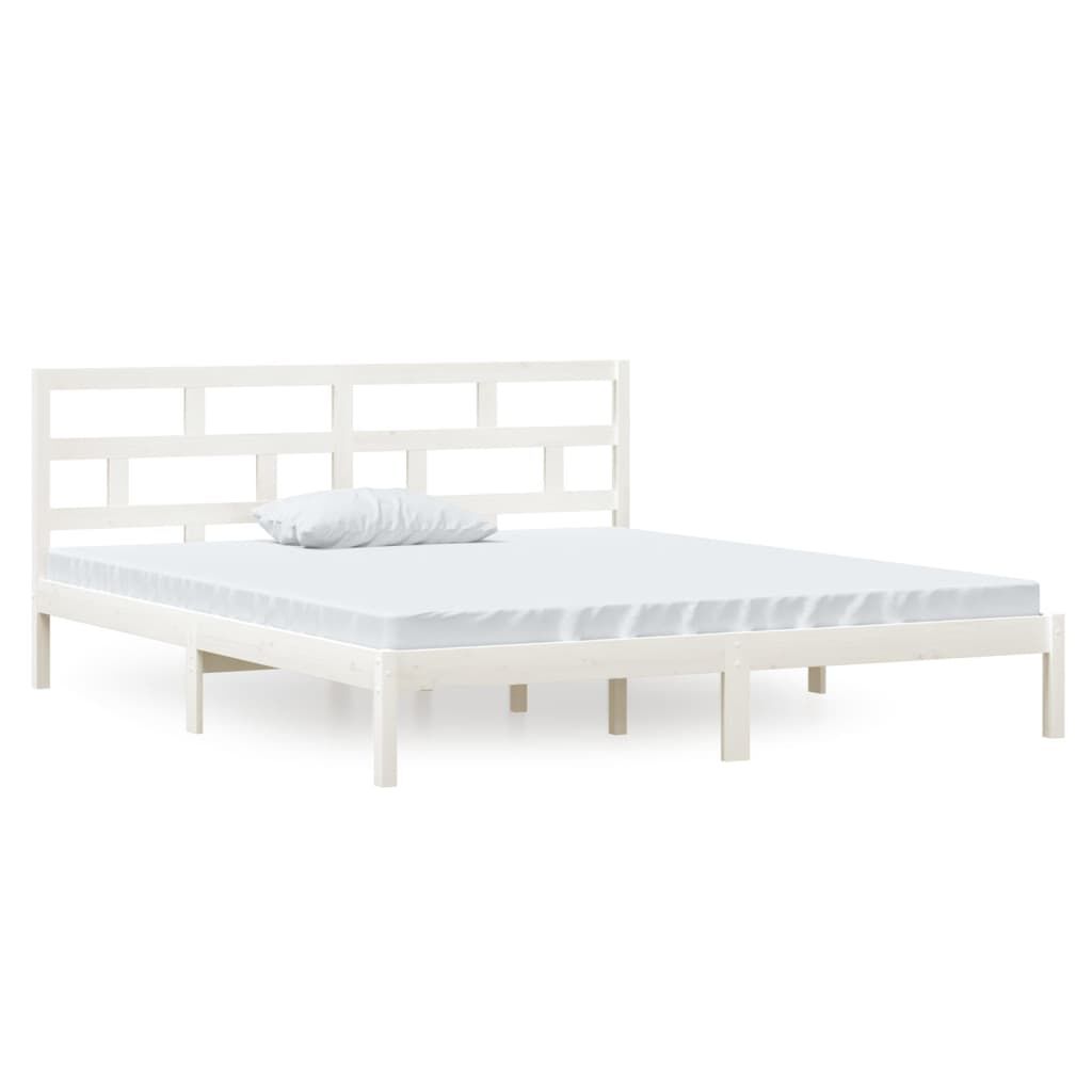 vidaXL Cadru de pat dublu, alb, 135x190 cm, lemn masiv