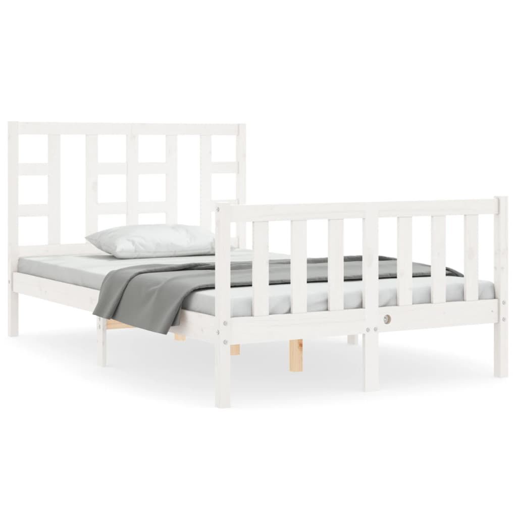 vidaXL Cadru de pat fără saltea, alb, 120x200 cm, lemn masiv pin