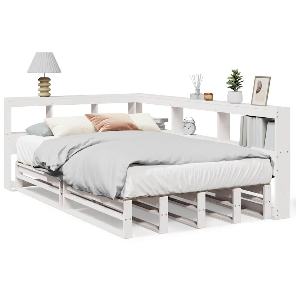 vidaXL Cadru de pat fără saltea, alb, 120x200 cm, lemn masiv pin
