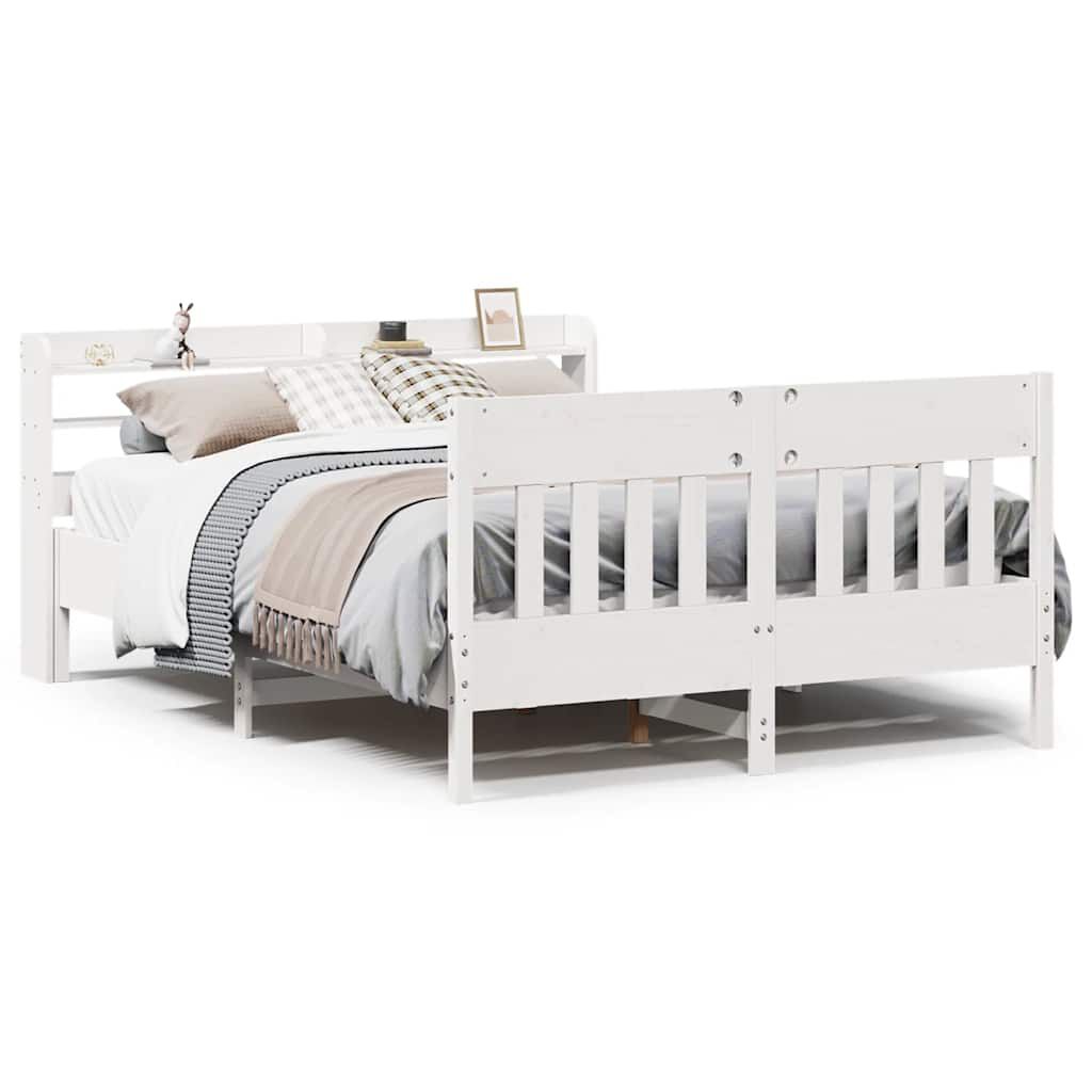 vidaXL Cadru de pat fără saltea, alb, 135x190 cm, lemn masiv de pin