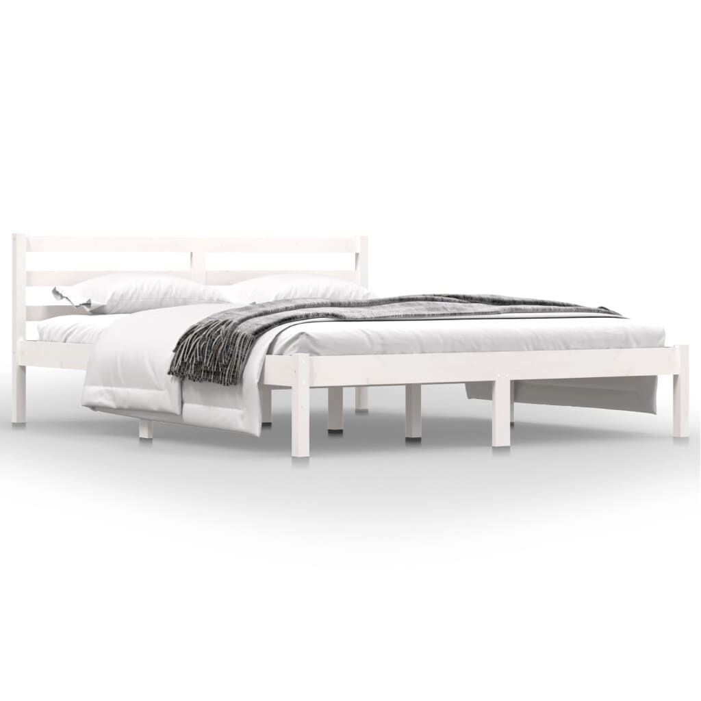 vidaXL Cadru de pat King Size, alb, 150x200 cm, lemn masiv de pin