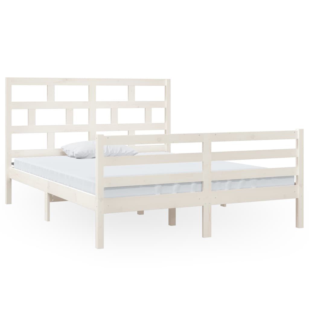 vidaXL Cadru de pat King Size, alb, 150x200 cm, lemn masiv