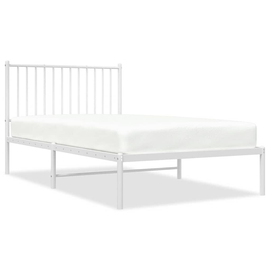 vidaXL Cadru de pat metalic cu tăblie, alb, 100x190 cm