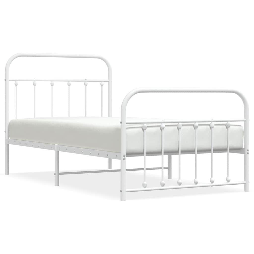 vidaXL Cadru de pat metalic cu tăblie de cap/picioare, alb, 100x190 cm