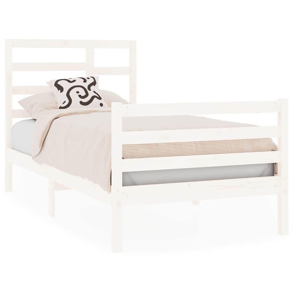 vidaXL Cadru de pat mic single, alb, 75x190 cm, lemn masiv