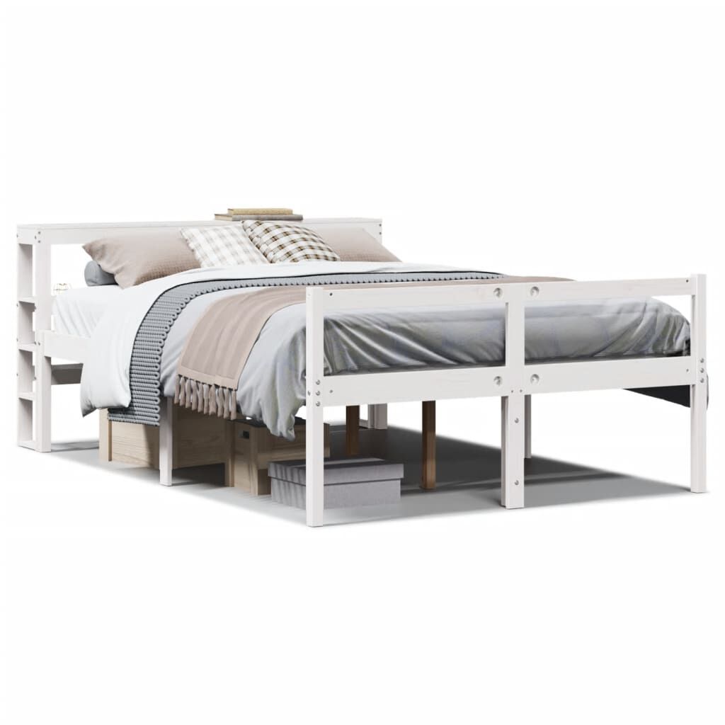 vidaXL Cadru de pat senior cu tăblie, alb, 150x200 cm, lemn masiv pin