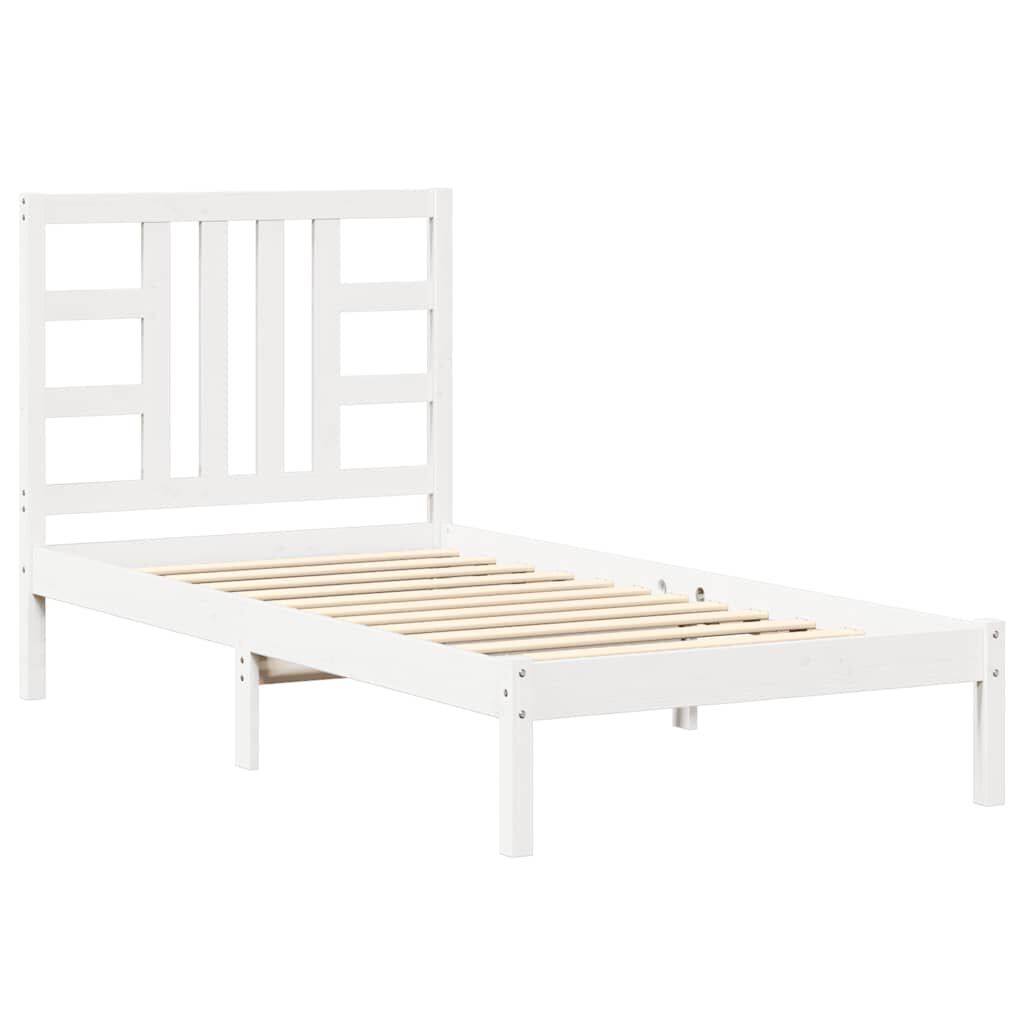 vidaXL Cadru de pat single, alb, 90x190 cm, lemn masiv