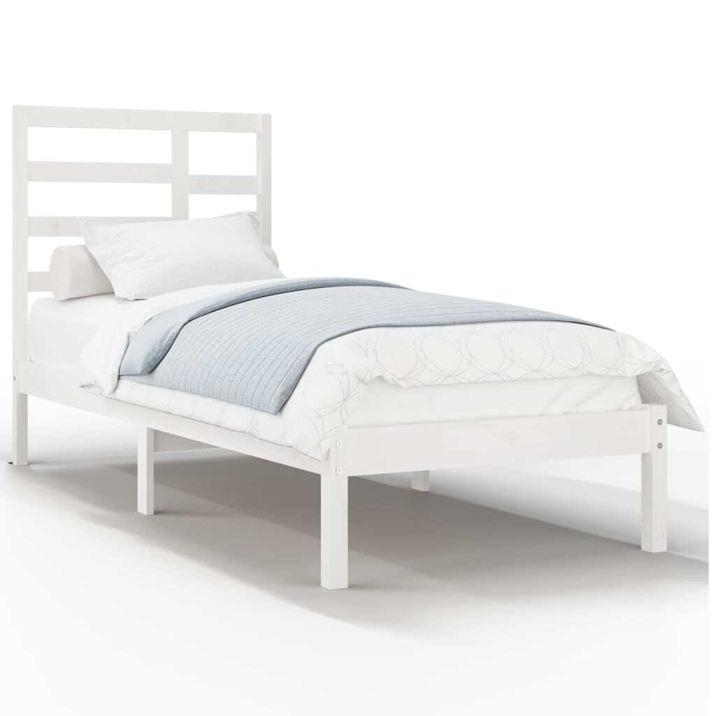 vidaXL Cadru de pat single, alb, 90x190 cm, lemn masiv