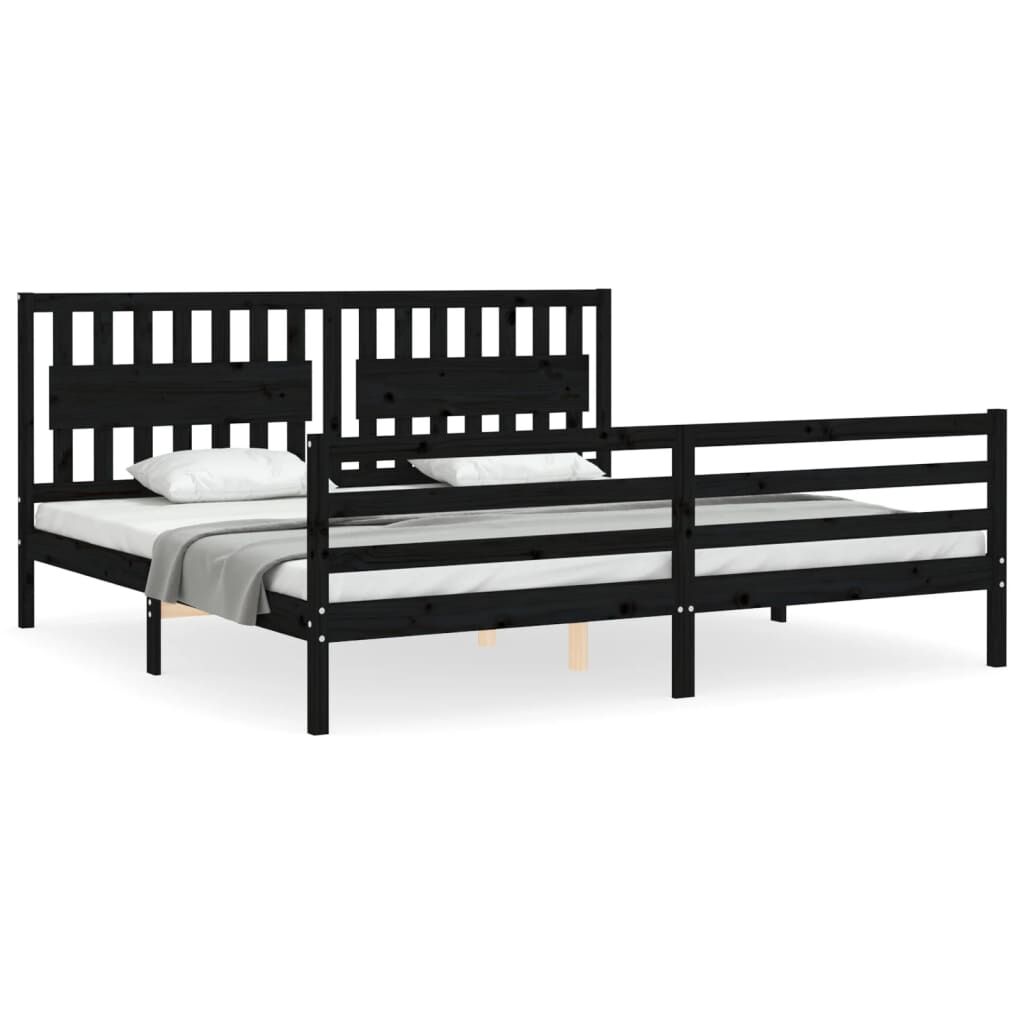 vidaXL Cadru pat cu tăblie 200x200 cm, negru, lemn masiv