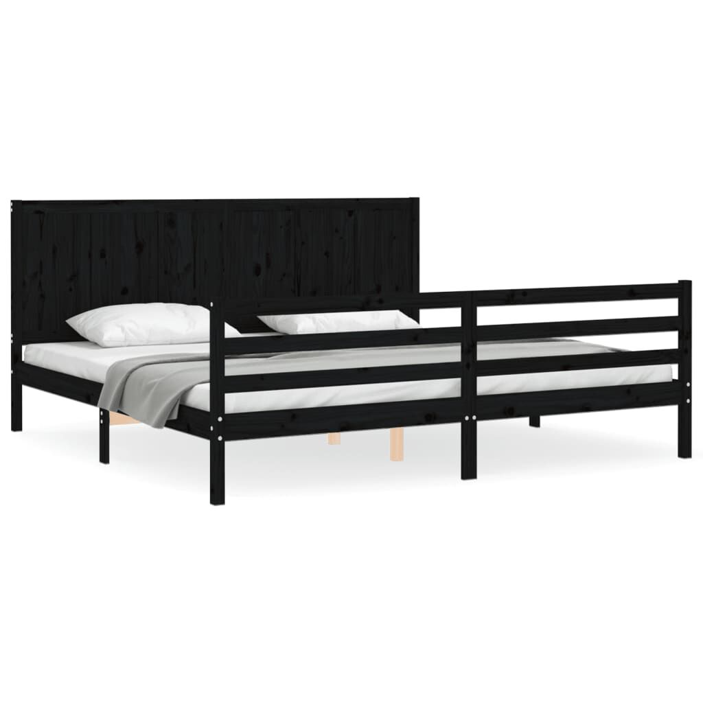 vidaXL Cadru pat cu tăblie 200x200 cm, negru, lemn masiv