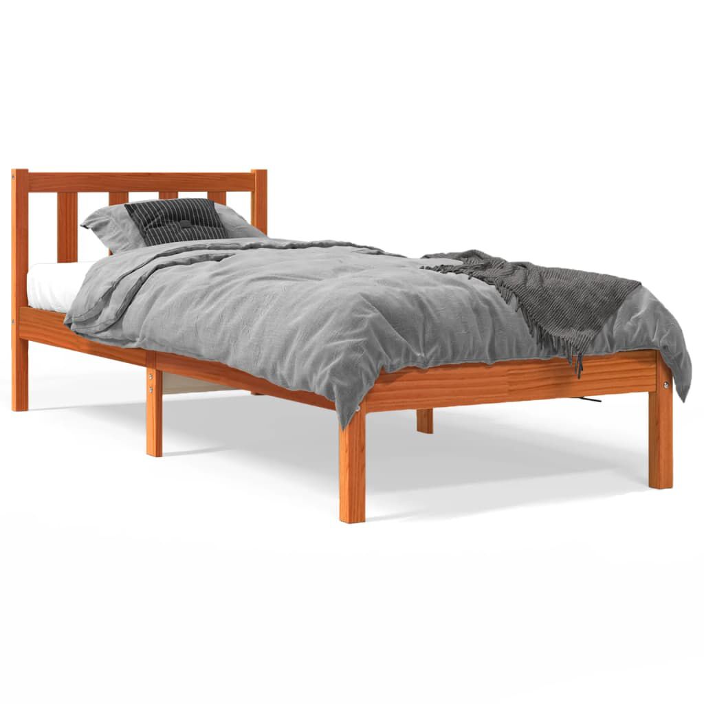 vidaXL Cadru pat fără saltea, maro ceruit, 75x190 cm, lemn masiv pin