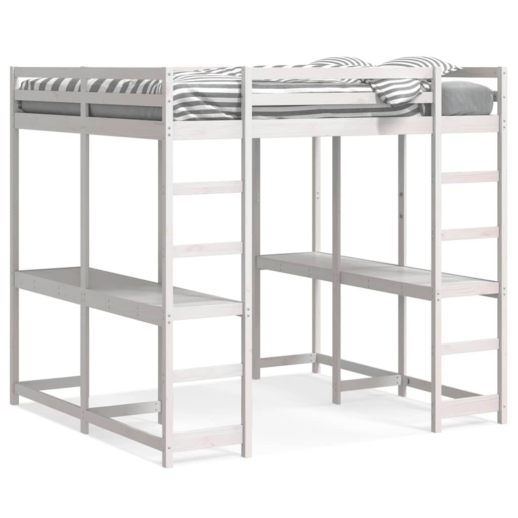 vidaXL Cadru pat supraetajat cu birou/scară, alb, 160x200 cm, lemn pin