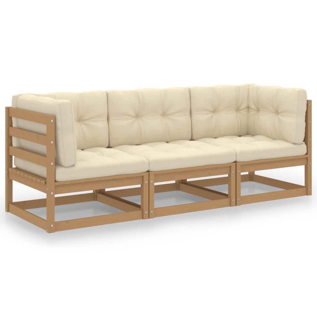 vidaXL Canapea de grădină cu 3 locuri, cu perne, lemn masiv de pin