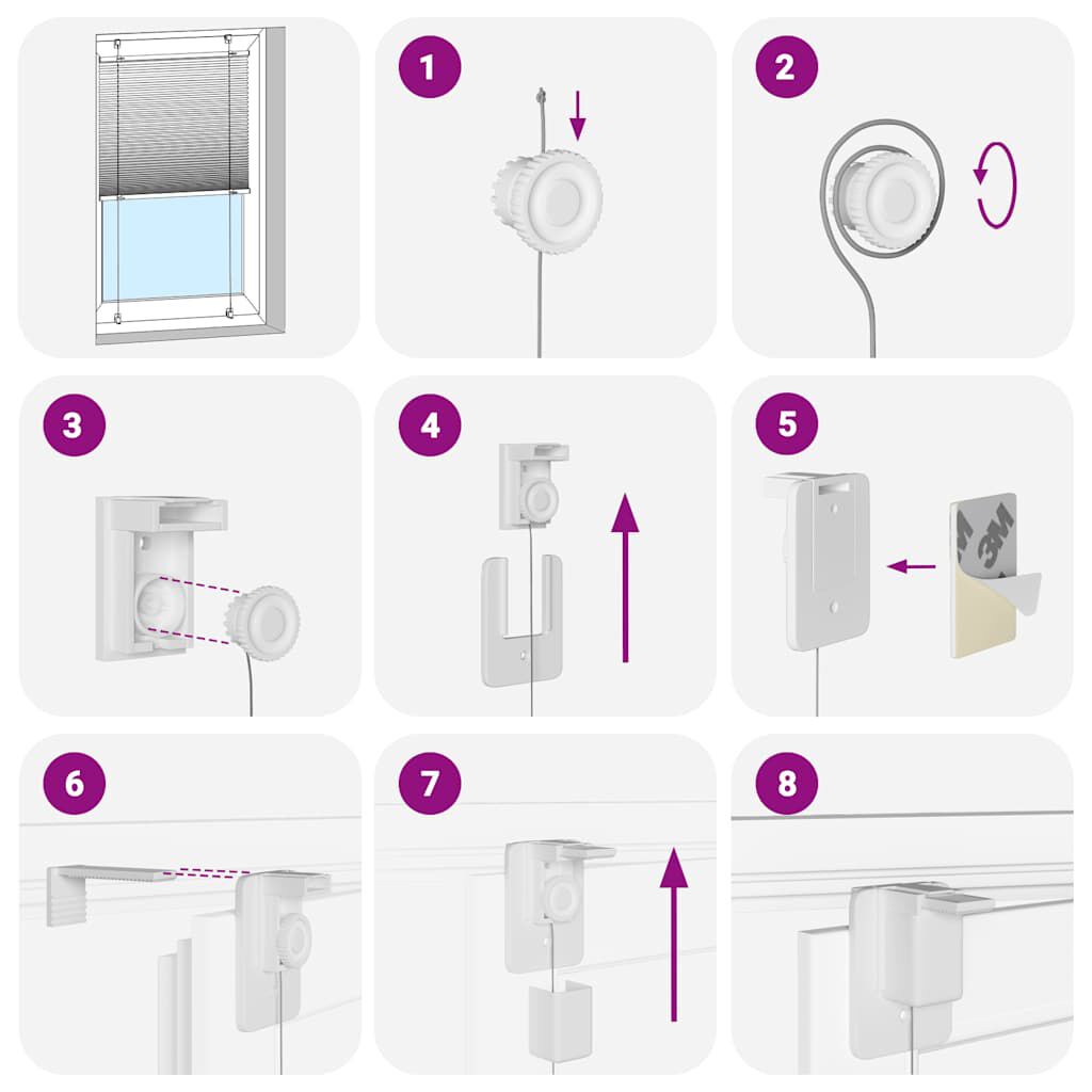 • Două moduri de asamblare: Puteți atașa jaluzea plisat pe perete sau fereastră cu șuruburi sau fără găurire folosind console de prindere, în funcție de nevoi.