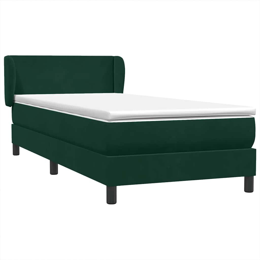 vidaXL Pat box spring cu saltea, verde închis, 90x220 cm, catifea