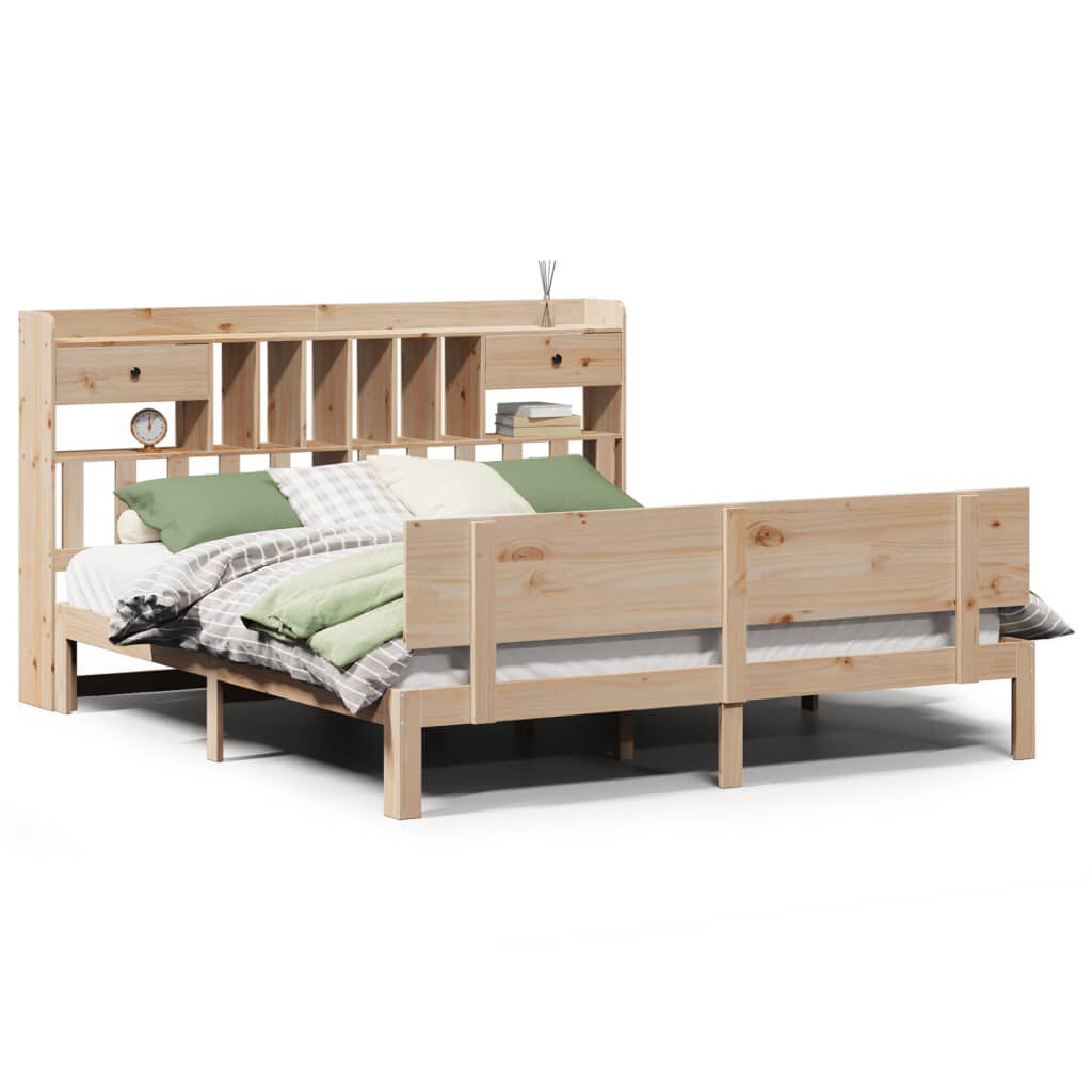 vidaXL Pat cu bibliotecă fără saltea, 180x200 cm, lemn masiv de pin