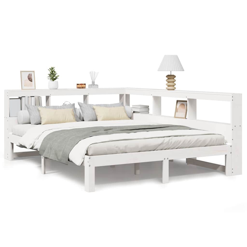 vidaXL Pat cu bibliotecă fără saltea, alb, 140x190 cm, lemn masiv pin
