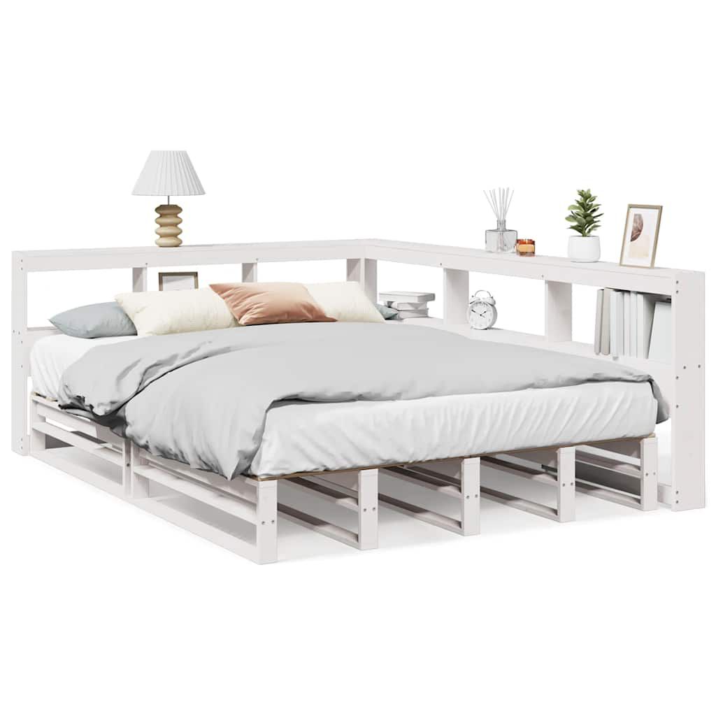 vidaXL Pat cu bibliotecă fără saltea, alb, 160x200 cm, lemn masiv pin