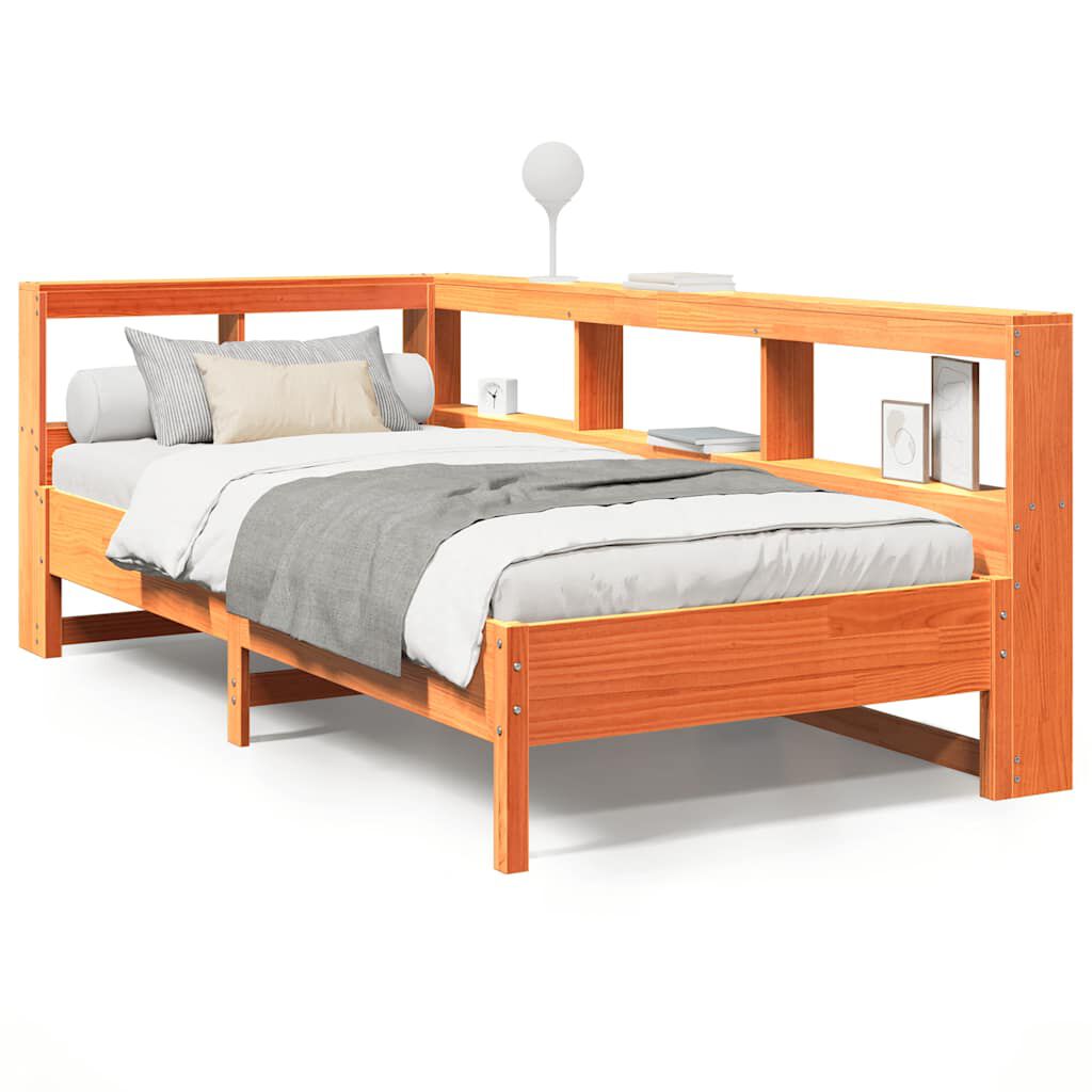vidaXL Pat cu bibliotecă fără saltea, maro, 100x200 cm, lemn masiv pin