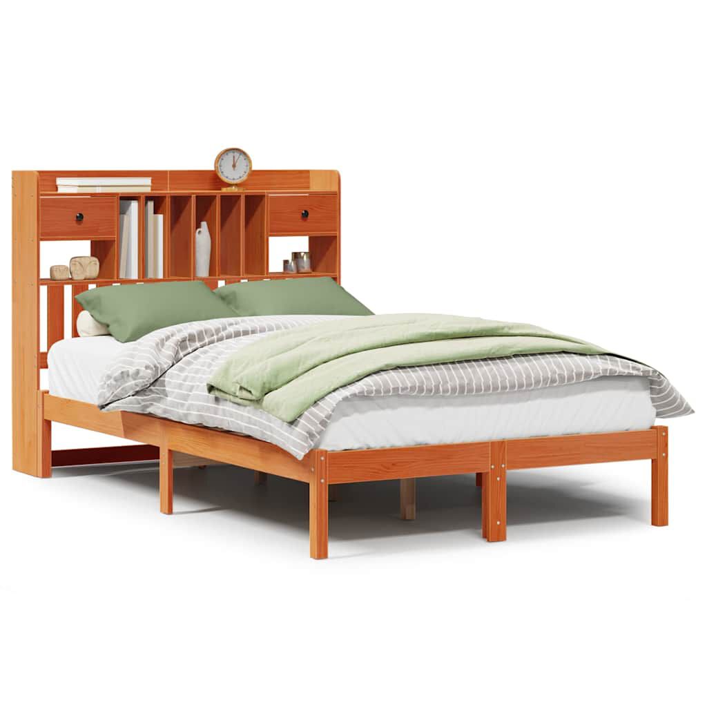 vidaXL Pat cu bibliotecă fără saltea maro 135x190 cm lemn masiv de pin