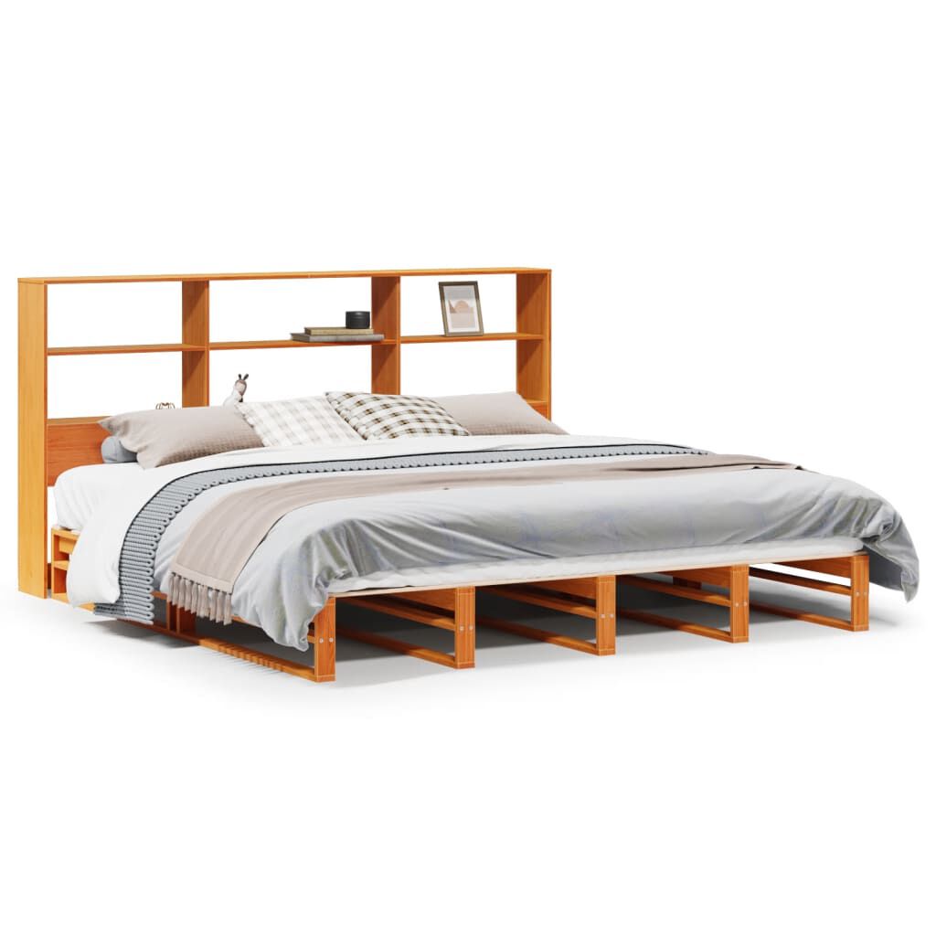 vidaXL Pat cu bibliotecă fără saltea maro ceruit 180x200 cm lemn masiv