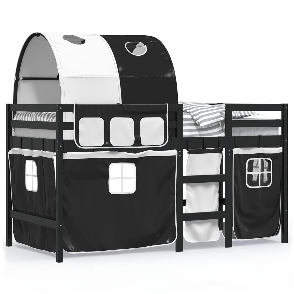 vidaXL Pat etajat de copii cu tunel alb/negru 90x200 cm lemn masiv pin