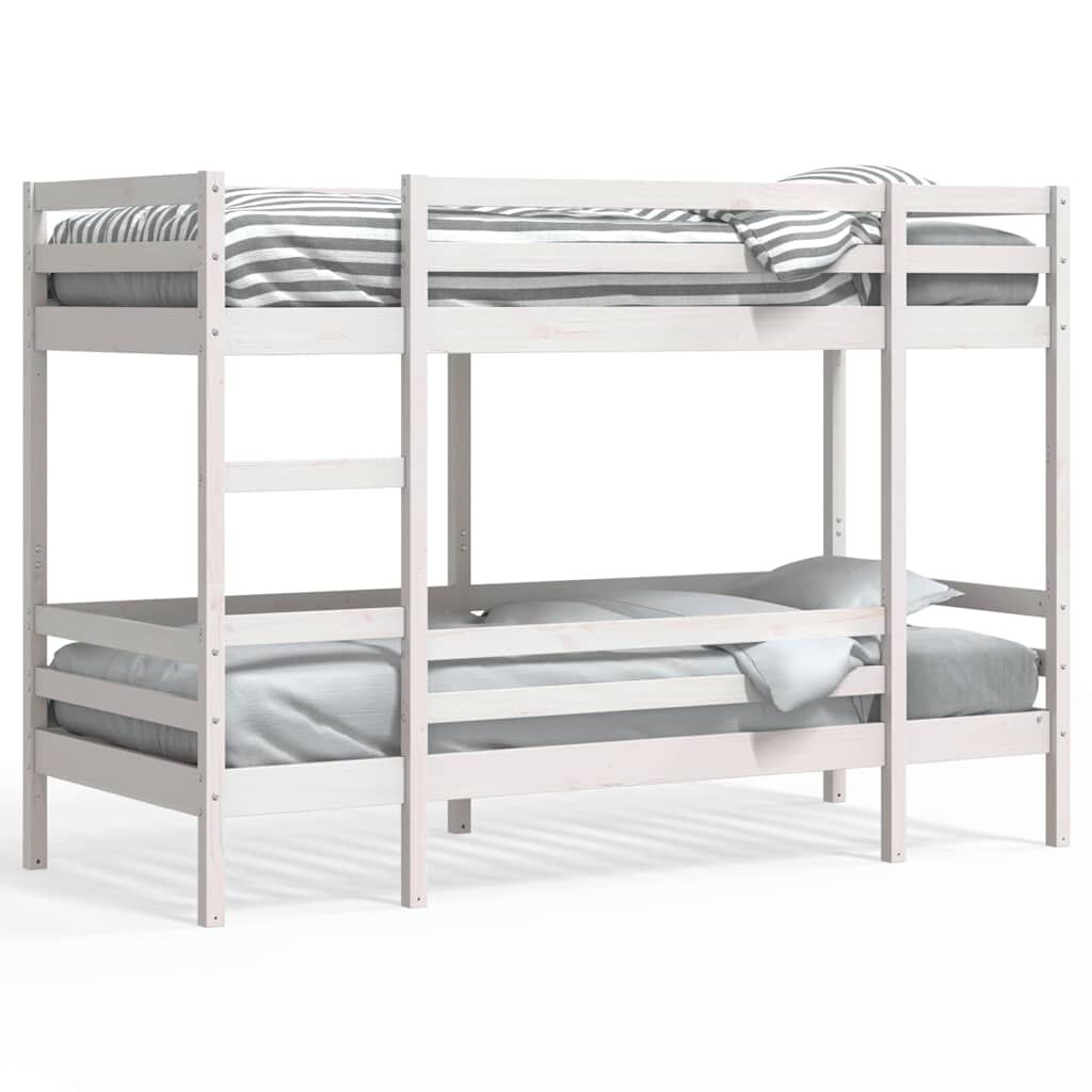 vidaXL Pat supraetajat, alb, 90x200 cm, lemn masiv de pin