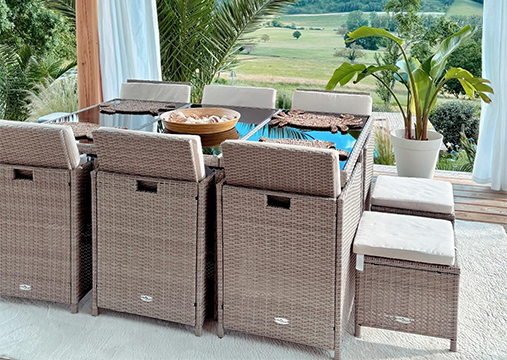 Pentru a face vă curtea să arate ca un resort, începeți cu seturi versatile de mobilier pentru exterior - excelente pentru a vă crea priveliștea perfectă. Bronzați-vă la soare pe șezlonguri și, desigur, adăugați perne din pluș pentru un plus de confort!