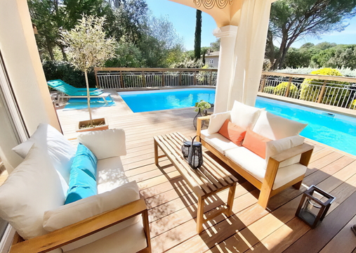Pentru a vă relaxa, veți avea nevoie de un spațiu senin, în stilul unui resort. Optați pentru mobilier confortabil de exterior, perne de pluș și covoare confortabile în culoari alb delicat, bej nisipiu și albastru ocean. Folosiți materiale naturale precum ratanul, tecul și răchita rezistentă la intemperii, pentru a vă finaliza spațiul de evadare visat.