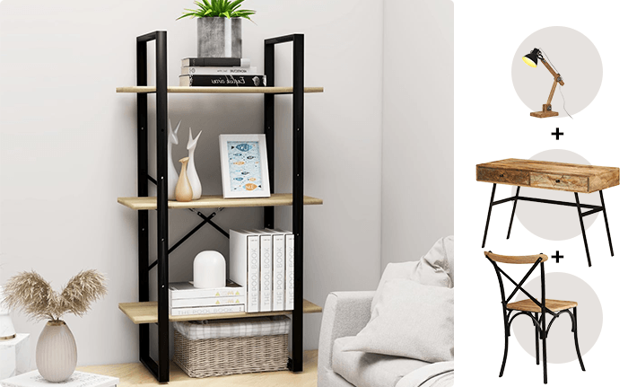 Mobilierul și accesoriile pe care le alegi se pot potrivi în orice stil de interior. Una dintre cele mai populare alegeri este proiectarea unei biblioteci de acasă în stil industrial. Pentru aceasta, concentrează-te pe mobilier și decorațiuni care se potrivesc cu o bibliotecă industrială. Începe prin a căuta rafturi în stil industrial – unități de rafturi metalice în negru, gri și alb, care sunt robuste și la modă. Decorează-ți biroul cu o veioză fermecătoare, care combină lemnul masiv de mango și metalul. Când proiectezi biblioteca industrială de acasă, încearcă diverse accesorii și articole de mobilier care subliniază eleganța stilului industrial.